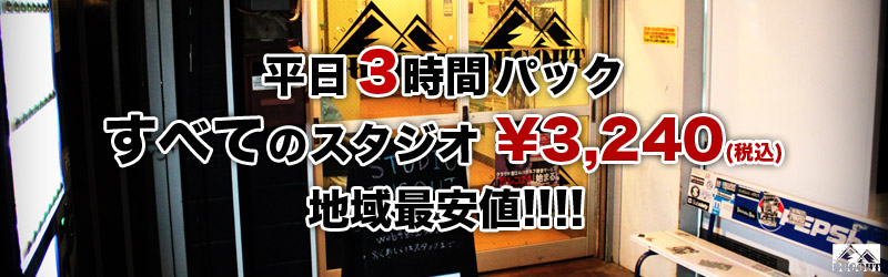 11畳の広さで驚きの料金のAスタジオです。(10時〜17時まで1h¥1470)